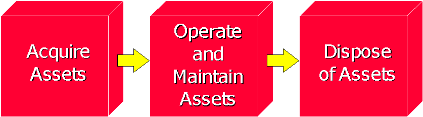 In the first instance, organisations may choose simply to outsource the work execution step, while retaining the remaining steps inhouse. This is often done on a limited basis, for example, when employing contractors to supplement an inhouse work force during times of high workload, during major shutdowns, for example. This is the minimalist approach to outsourcing. An alternative approach is to outsource all of the above activities with the exception of the analysis and work identification steps. In this approach, the contractor is permitted to plan and schedule his own work, and decide how and when work is to be done, but the outsourcing organisation retains control over what is to be done. A third approach is to outsource all of the above steps, thus giving control over the development of equipment maintenance strategies (ie Preventive and Predictive Maintenance programs) to the contractor. In this instance, the contract must be structured around the achievement of desired outcomes in terms of equipment performance, with the contractor being given latitude to achieve this to the best of his ability. There are advantages and disadvantages to each approach, and the most appropriate approach will depend on the client’s particular situation. Looking at how maintenance fits into the wider asset management strategy of an organisation (as illustrated below) also raises interesting challenges.